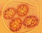 Asques et ascospores de T. mesentericum (coloration au bleu lactique). In "La Truffe de Bourgogne.