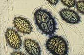 (Chatin avait remarqué que le réseau membraneux qui orne les spores sèches est surmonté de « papilles » recourbées en crochet.)